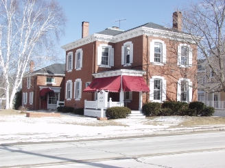 Our building is a large, stately-looking brick house with white shutters. There is a tree in front and a small park with a gazeebo to the left of the building. Just across the street is the Walker Memorial Library. There is free parking on the street in front, or around the corner in the large public parking lot.