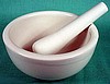 White porcelain apothecary mortar & pestle with a 3" diameter bowl for grinding herbs and resins.