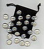 Rune set consisting of of 25 tumbled, polished moonstones handcrafted with engraved, black-painted lettering.