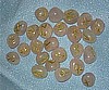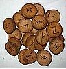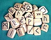 Engraved 25 piece polished bone rune set, natural color. Pieces approx. 3/8" square.