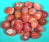 Rune set consisting of of 25 tumbled, polished carnelians handcrafted with engraved, gold-painted lettering.