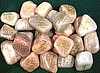 Rune set consisting of of 25 tumbled, polished rose quartz handcrafted with engraved, gold-painted lettering.