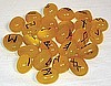 Rune set consisting of of 25 tumbled, polished yellow (dyed) handcrafted with engraved, gold-painted lettering.