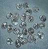 Rune set consisting of of 25 tumbled, polished clear quartz handcrafted with engraved, gold-painted lettering.